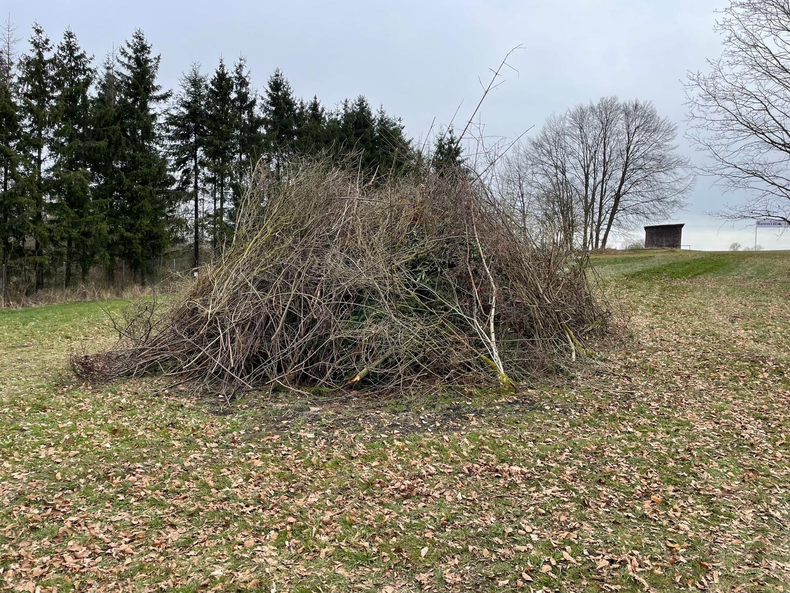 und so war das Osterfeuer zügig aufgeschichtet….loses Gestrüpp aufgesammelt, der Einfahrtsbereich nebst Zaun frei geschnitten und auch hinter dem Pistolenstand der Hang freigelegt.